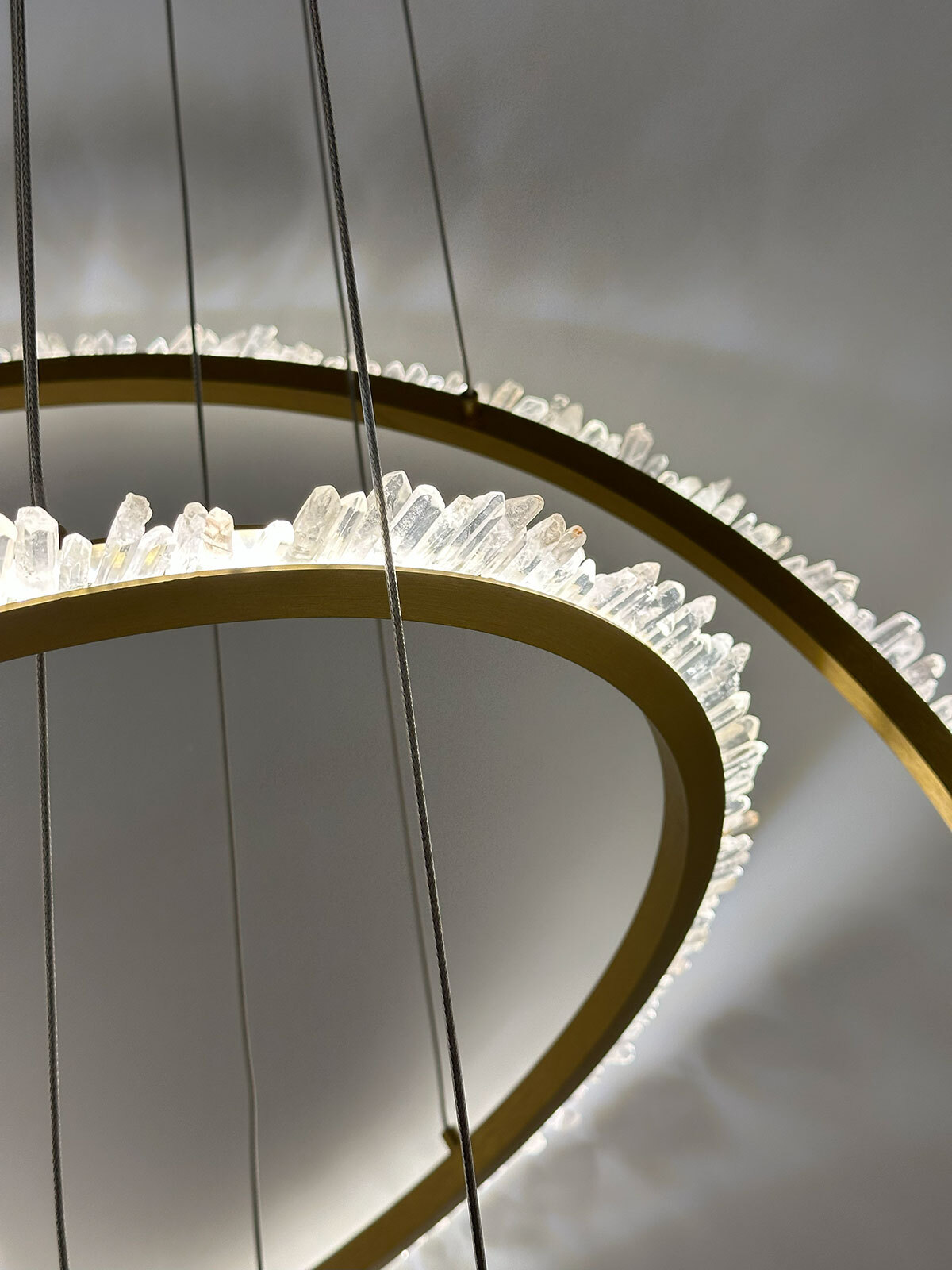 Настольная лампа Delight Collection MT20020154-2A satin gold из двух колец разного диаметра из металла с отделкой сатинированное золото. По внешнему периметру колец расположены кристаллы из горного хрусталя.