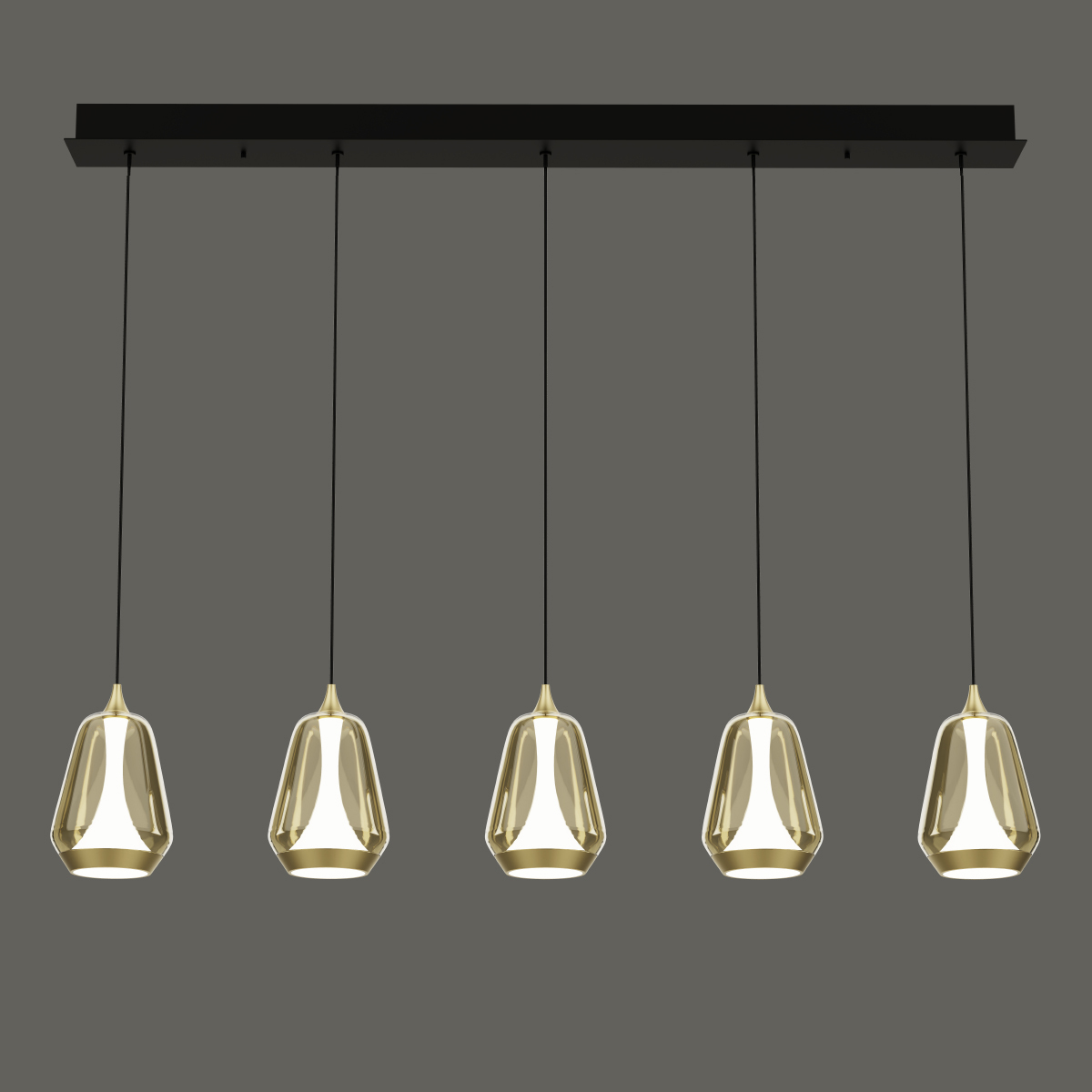 Подвесной светильник Delight Collection MD24001011-5B brass/champagne с пятью подвесами на планке черного цвета. Плафоны из стекла цвета шампань с латунными элементами. Внутри плафонов рассеиватели из матового акрила.